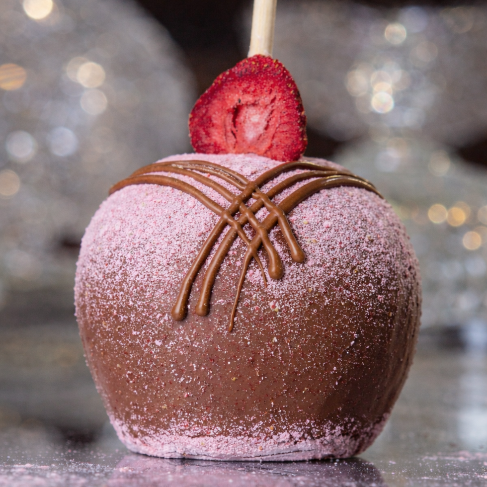 Inspired by the classic chocolate-covered strawberry -now in gourmet caramel apple form!